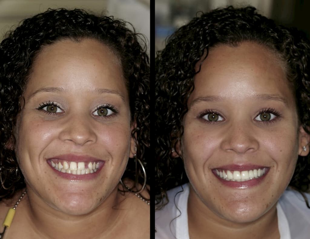 Lady Gaga says “Born This Way”; we say “Congenitally Missing Lateral Incisors”. It’s more common than you might think. Many people are born without one or more lateral incisors, the teeth right next to the front teeth. You can see in Denise’s before picture how other teeth may shift and grow in the wrong direction as nature tries to correct the problem. Because we have seen so many cases of missing teeth, we know whether the solution is as simple as porcelain veneers or as intricate as a combination of bridges, implants and veneers. Can you guess what we did for Denise? Neither can anyone else! Because her smile looks like she was born this way.