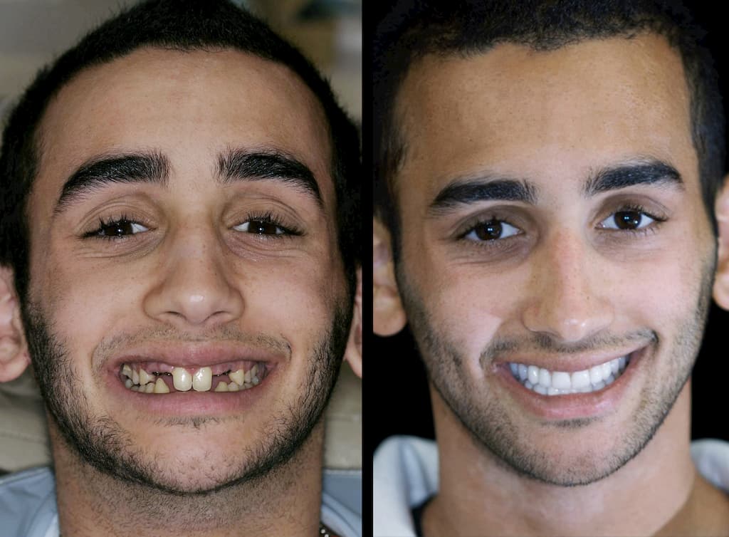 We’ve got kids. We were kids. Every kid gets teased sometimes. It’s part of being a kid. But constant teasing can be hard for a kid to just shrug off. Some things dentists and parents can’t fix. Missing teeth? That we can fix. Even if you are born without a lot of them. We designed a plan to open Keith’s bite by building up his back teeth with porcelain onlays. That gave us room to sculpt a beautiful smile using a combination of techniques including a fixed bridge, porcelain veneers, implants, and crowns. If you were the kid who got teased because of your teeth (yo, Bucky), we can make it better.