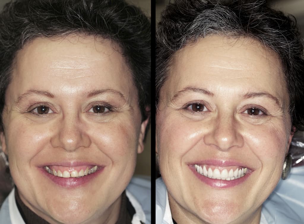 We’ve seen cases like Mary’s before – because two of her siblings are our patients. The gummy smile runs in the family. With the help of our periodontist we reshaped the gumline appreciably by actually raising it, so more tooth structure became visible. Often when we raise the gum line, a procedure called a gum lift, spaces are created between the teeth making it necessary to reshape the teeth with porcelain veneers. In Mary’s case LLK veneers also lengthened the teeth and evened out the spacing. Recently someone took a snapshot of the siblings, all with big smiles. They love that photo. Now, instead of seeing an expanse of shiny pink gums, you see great teeth that look like they run in the family.